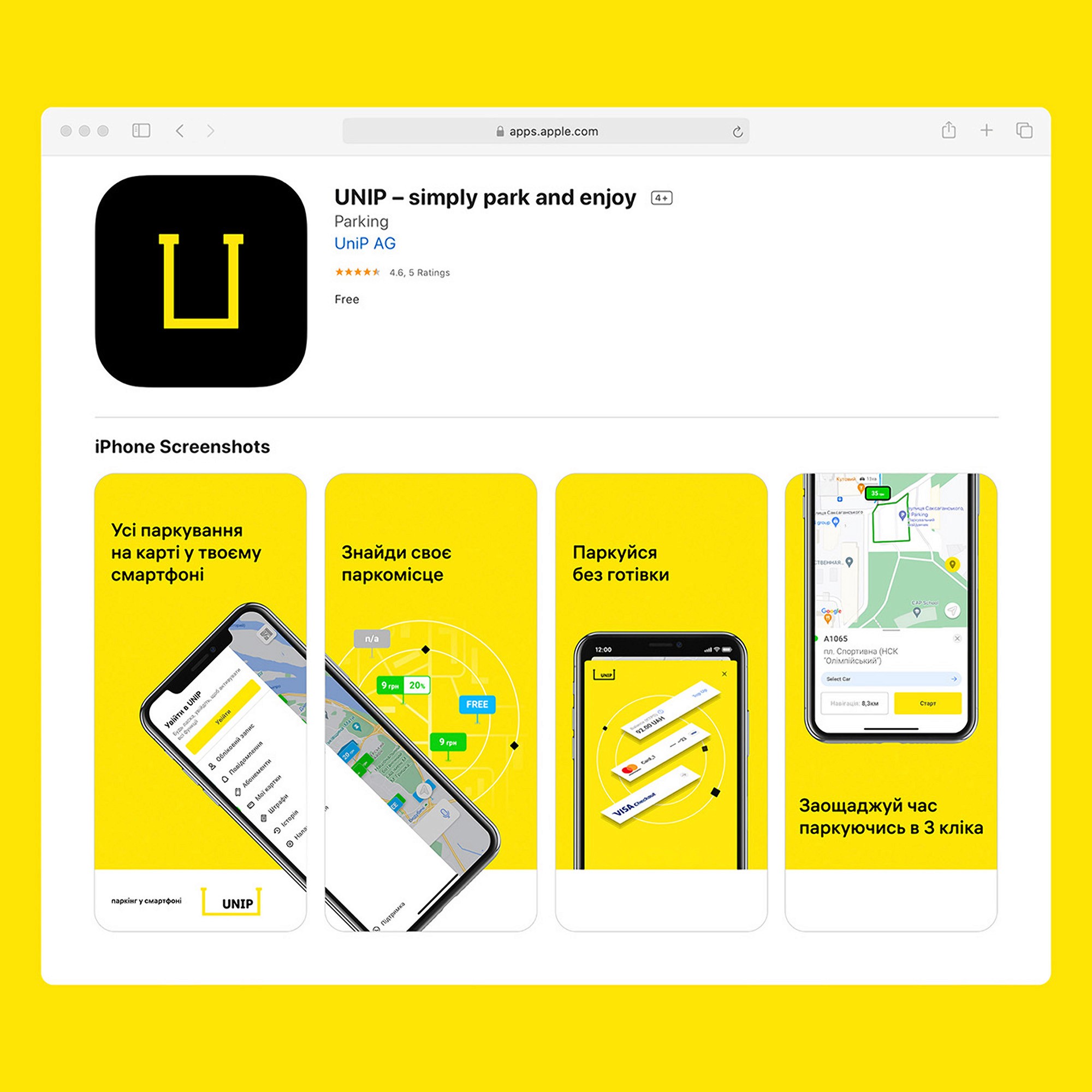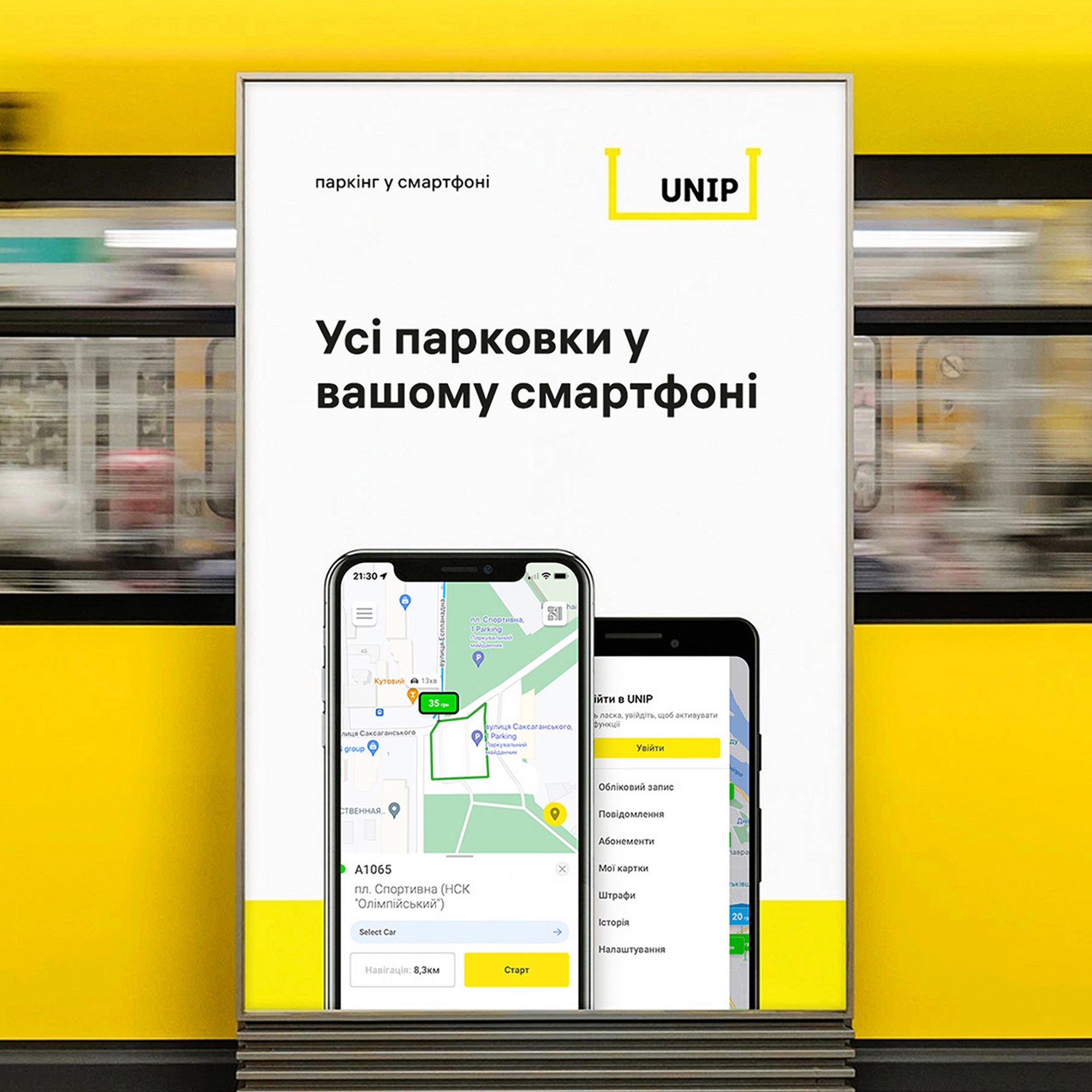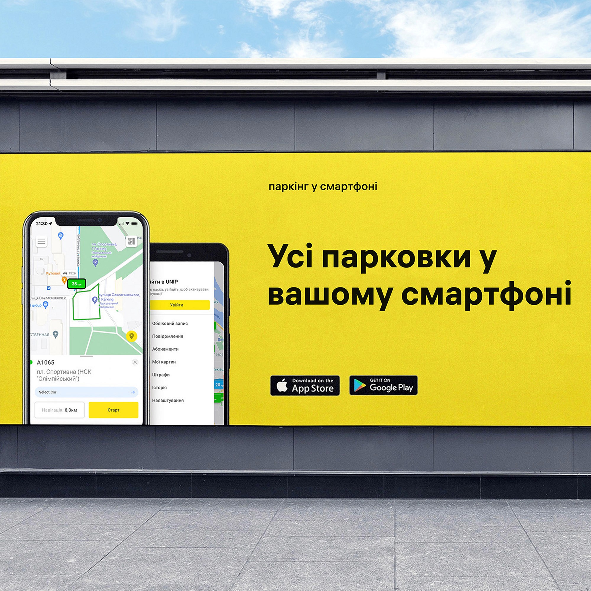Universal mobile parking app that allows you to find parking, get directions on a map and pay with a bank card for a parking space near your destination.