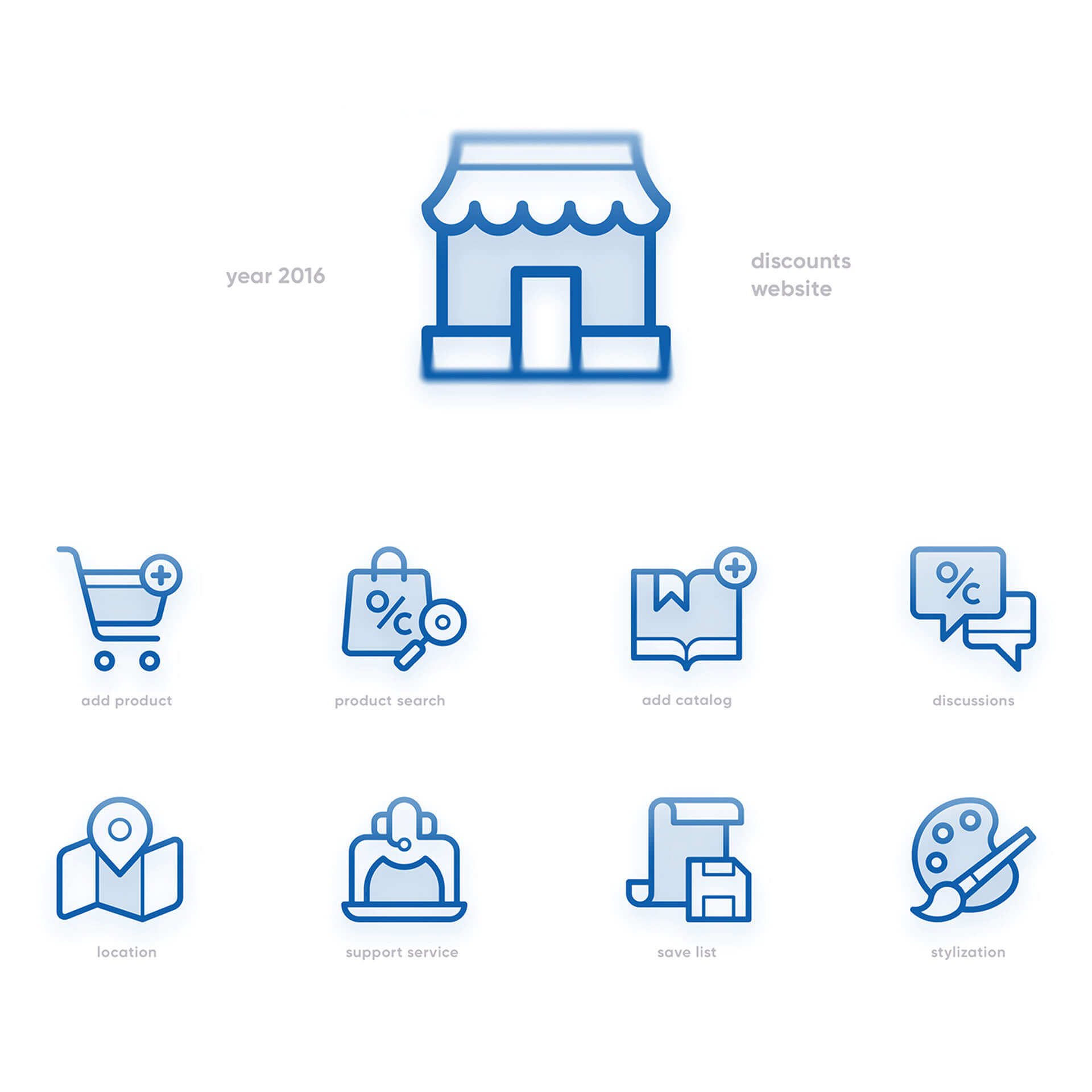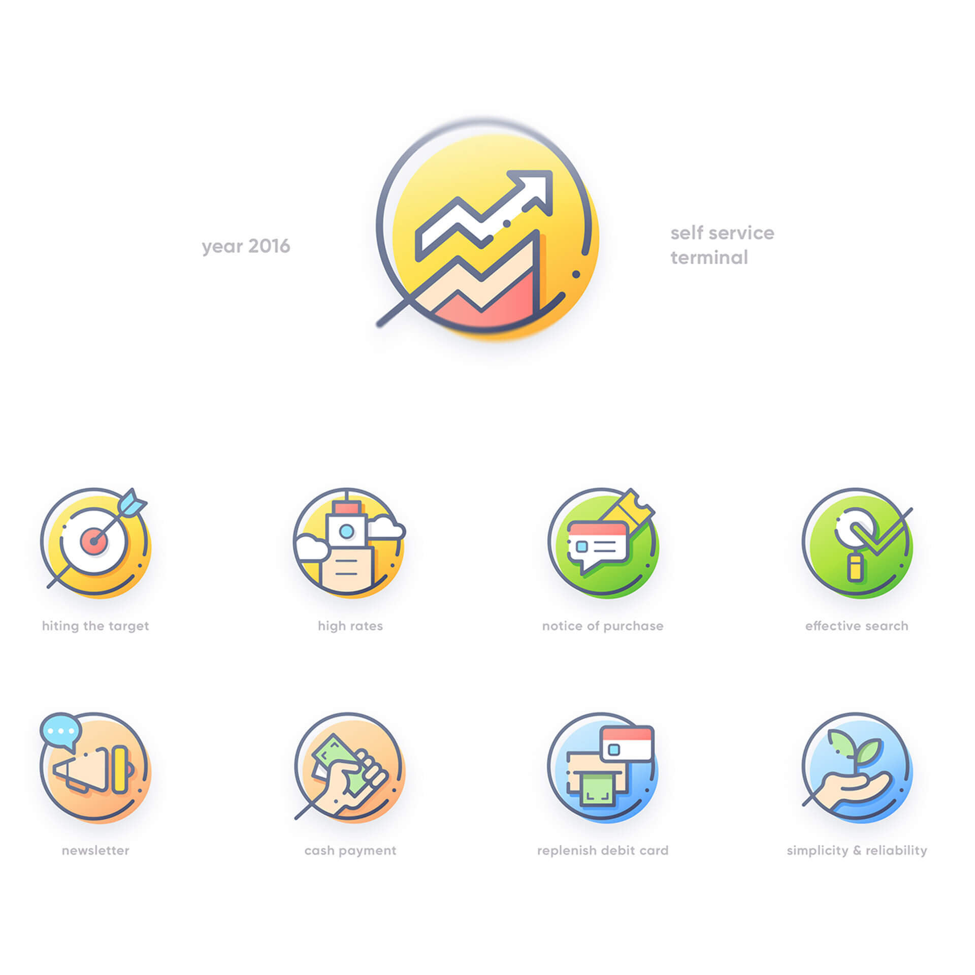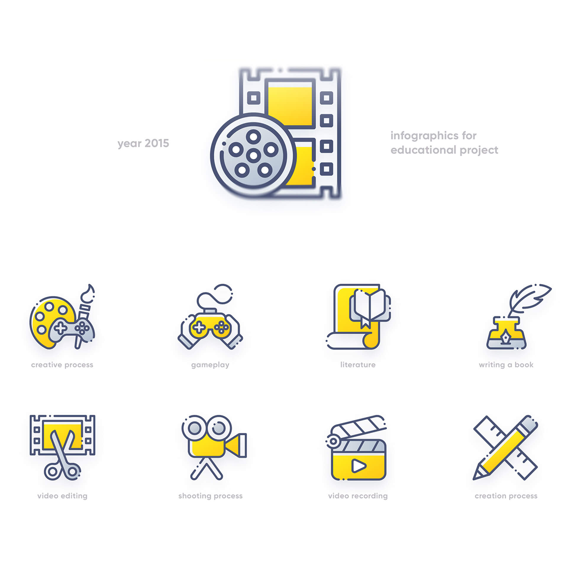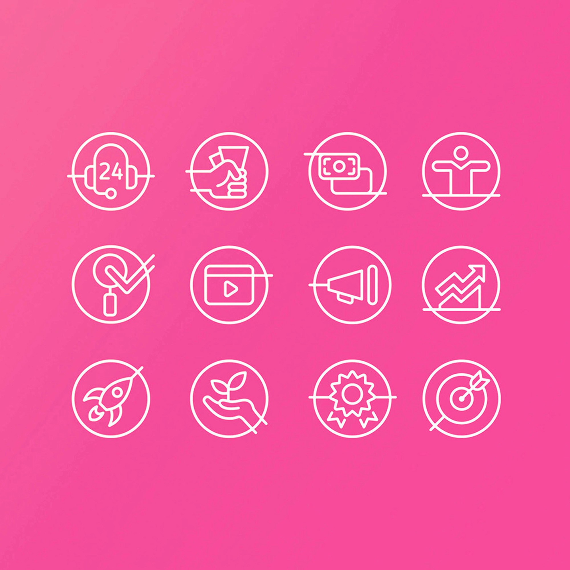 Selected icons created for websites, presentations and printed materials.