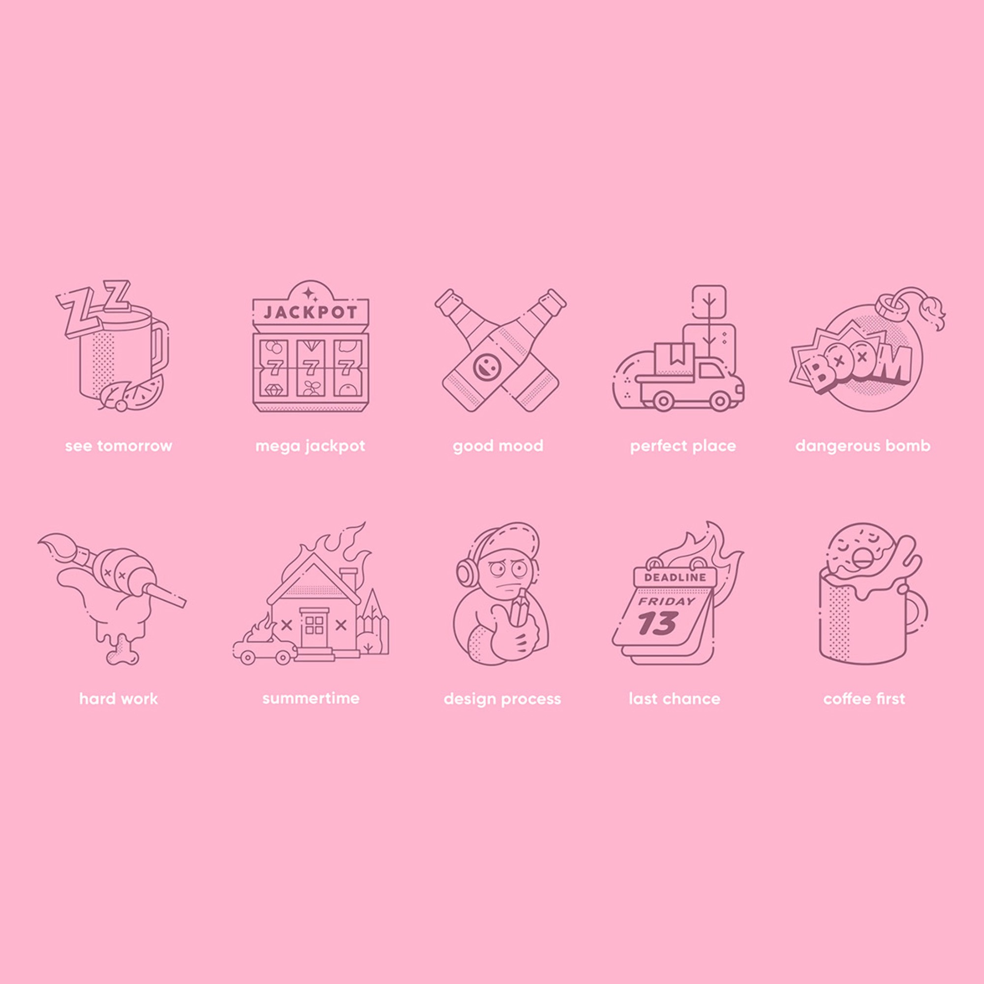 Collection of thematic illustrations in sticker pack.